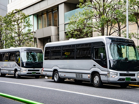 インバウンド送迎から観光地への送迎に大型バス、日常での団体移動時にマイクロバスは小回りが利くため便利です。